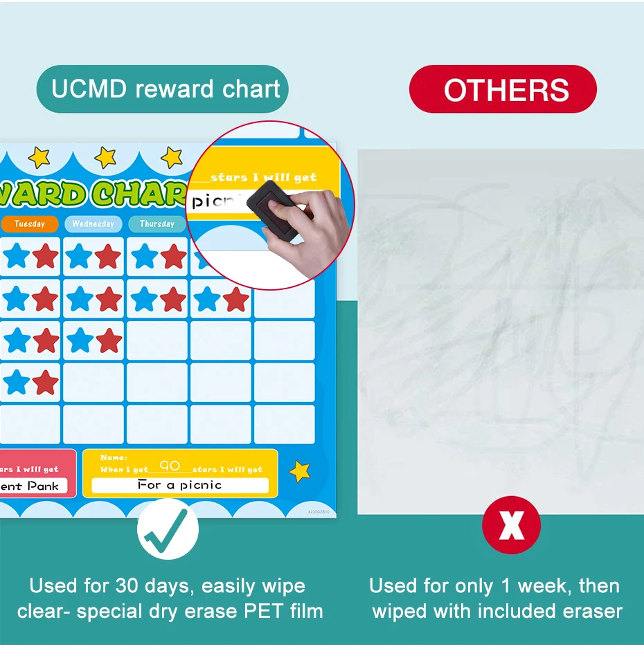 1.UCMD Таблица наград: используется в течение 30 дней, легко протирать-специальная сухая стирающая ПЭТ пленка