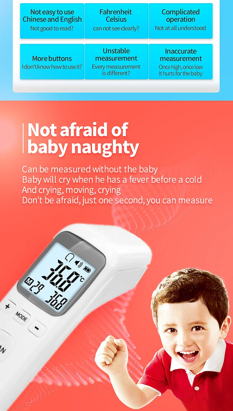 Отзывы о Детский термометр для лба цифровой светодиодный быстрое точное измерение