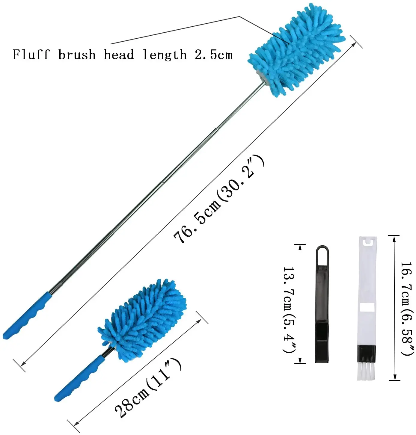 - The flexible duster with telescoping pole,extends from 11"(28cm) to 30.2"(76.5cm),convenience for reach hard to clean spots and easy to storage.