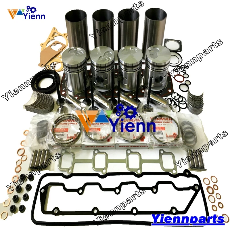 Комплект для ремонта дизельного двигателя Yanmar 4TNE98: поршень, поршневое кольцо, гильза цилиндра, полный комплект прокладок, комплект подшипников, набор Vavle