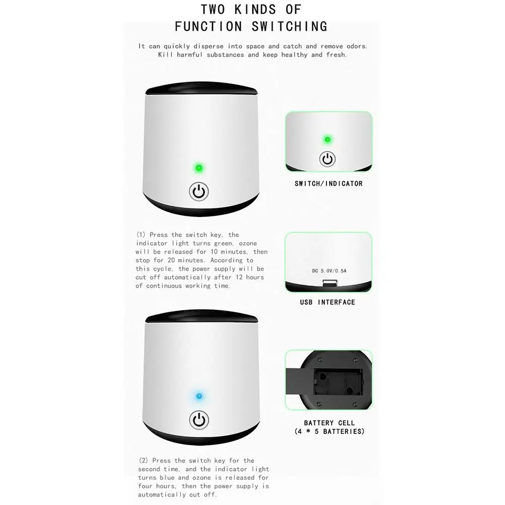 Широкий характеристика: Очиститель воздуха устраняет 99% плавающих бактерий в небольшом помещении (в идеальном случае менее 0,35 м³). Он также уничтожает запах, развеивает газ. Идеально подходит для использования в холодильнике, шкафу, обувном шкафу, ванной комнате, детской комнате, зоне домашних животных, и подходит для использования в автомобиле.