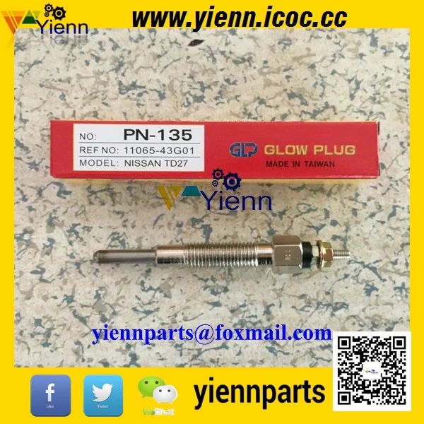 For Nissan TD27 TD27T GLOW PLUG 11065-43G01 MADE IN TAIWAN For Nissan FJ01 FJ02 YJ02 FGJ02 Forklifts TD27 Engine Repair parts