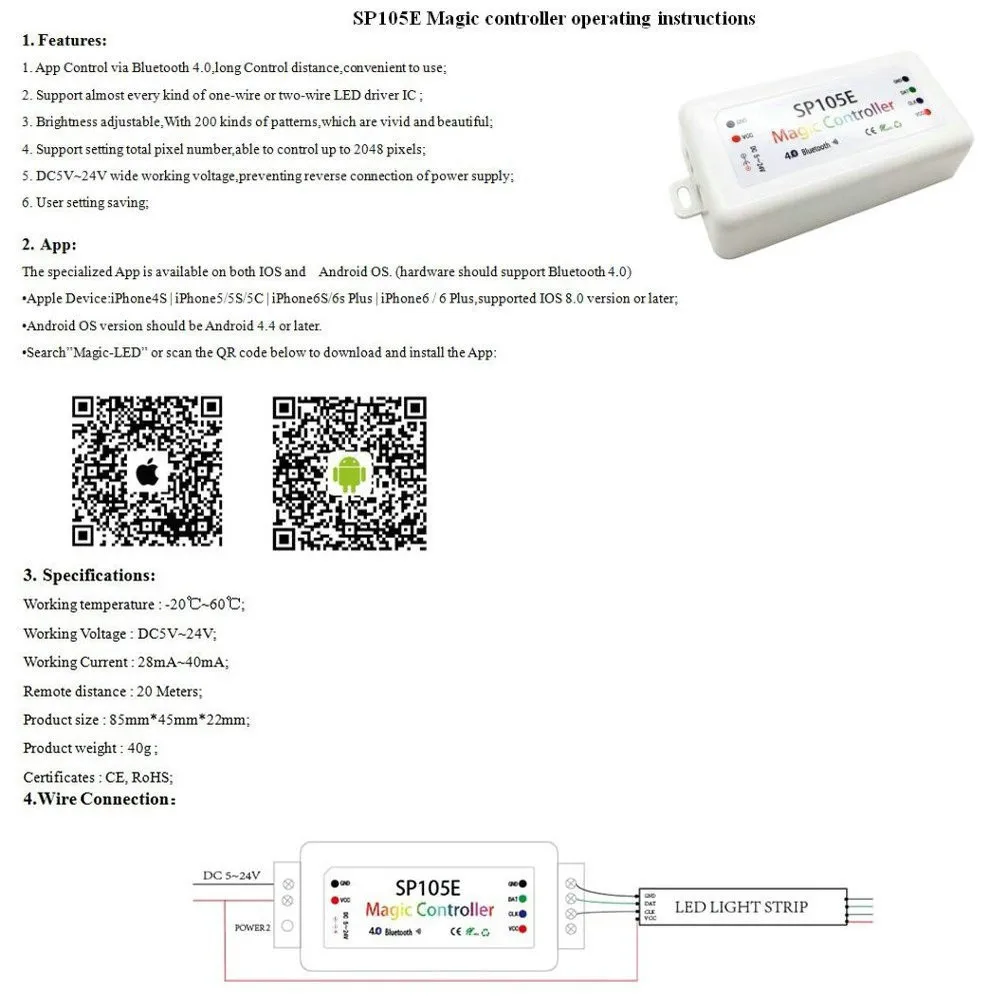 DC5-24V SP105E волшебный контроллер Bluetooth 2048 пикселей для WS2811 2812 2801 6803 6812 IC Светодиодная лента Поддержка IOS / Android APP