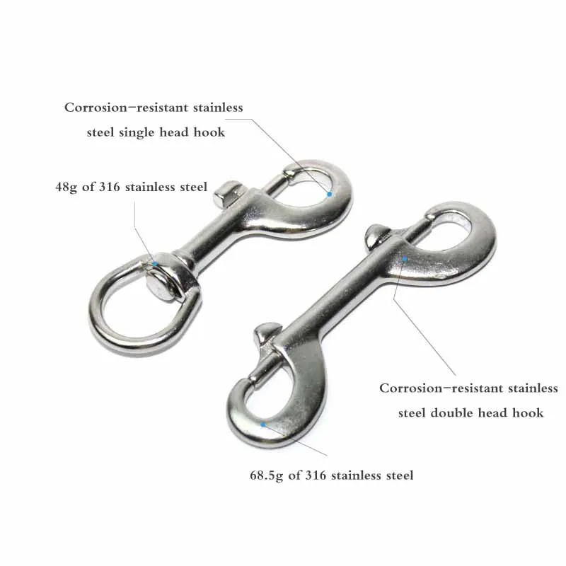 Зажим для дайвинга изготовлен из морской нержавеющей стали марки 316 с характеристиками антикоррозии морской воды, не ржавеет, не коррозии, может использоваться в морской среде.