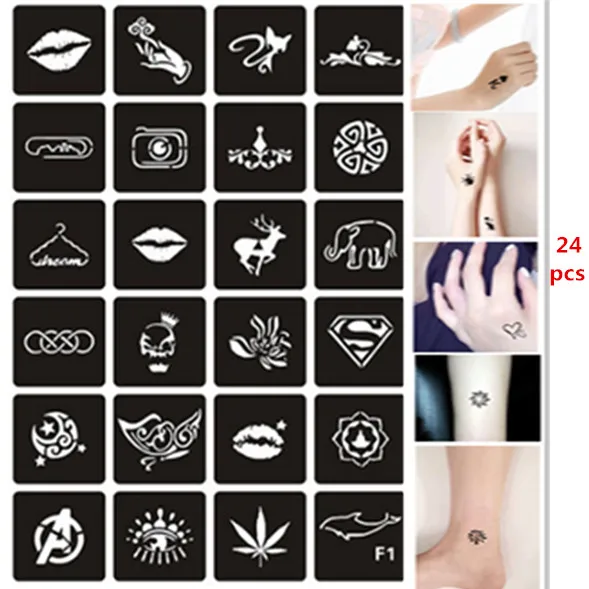 Отзывы о 24 шт./компл. трафареты для временной хны губы кошачий череп дизайн выдолбленные