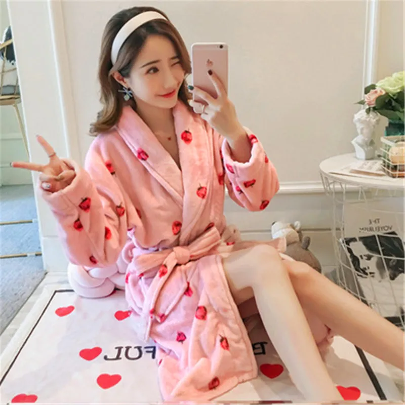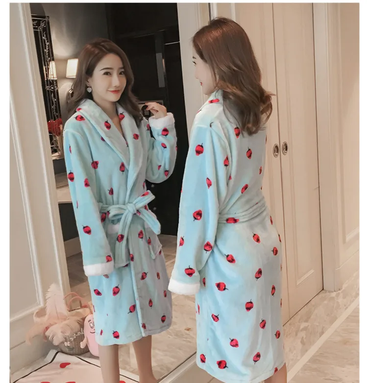 Отзывы о Модный милый женский Пижамный Халат длинный фланелевый хлопковый с длинным