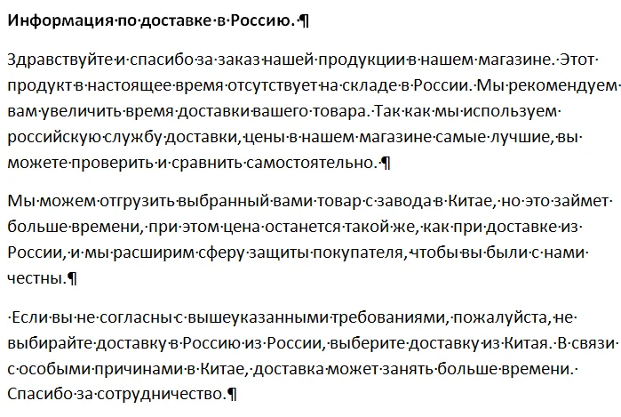 Убедитесь, что вы указали правильный адрес доставки и телефон.Все товары будут отправляться только на указанный вами адрес доставки.Выберите одну из нужных услуг доставки.Политика возврата средств