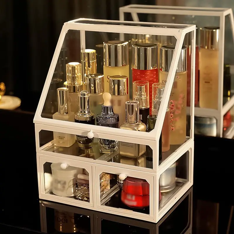 Transparent Drawer Storage Box Glass Desktop finishing Skin Care Shelf Tissue Jewellery Necklace Ring Makeup Organizer