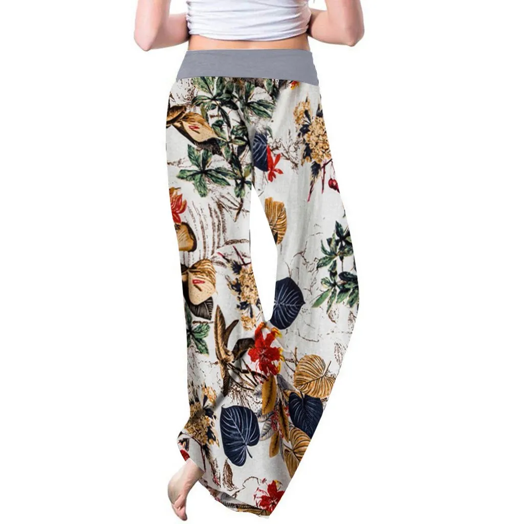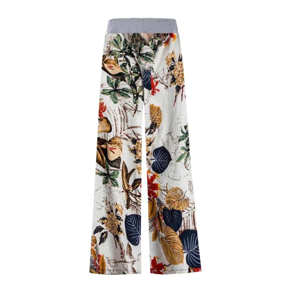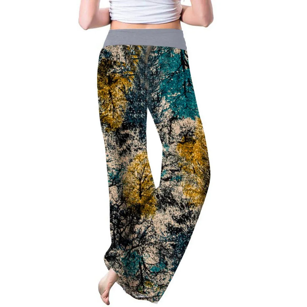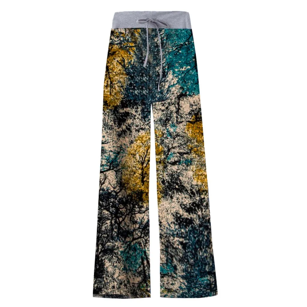 Женские повседневные удобные Стрейчевые широкие брюки с принтом и завязками; Брюки; Пижамы