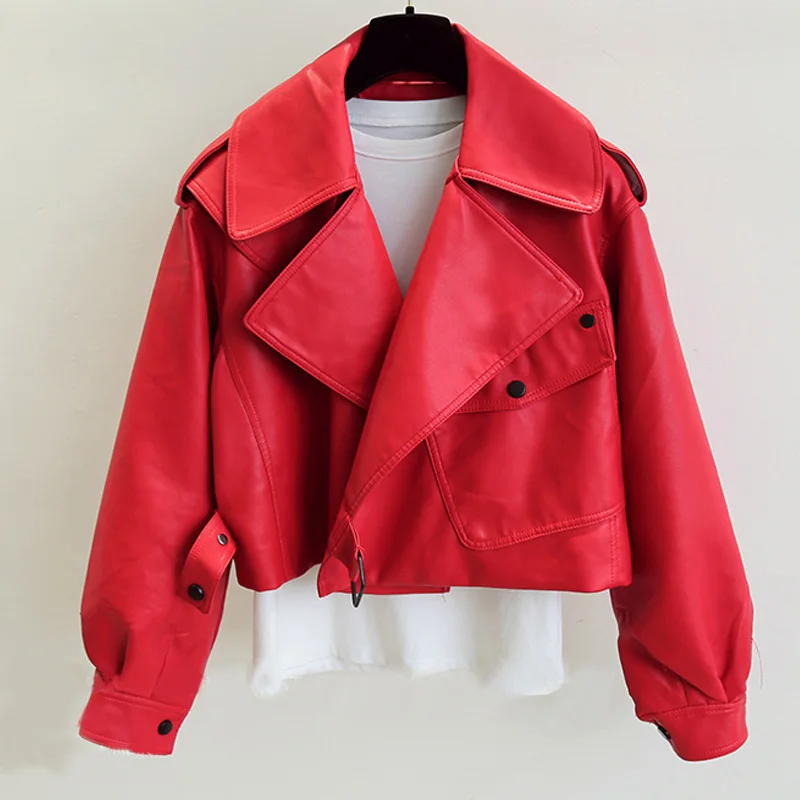 Отзывы о Куртка мотоциклетная Женская из ПУ кожи однотонная свободная с поясом
