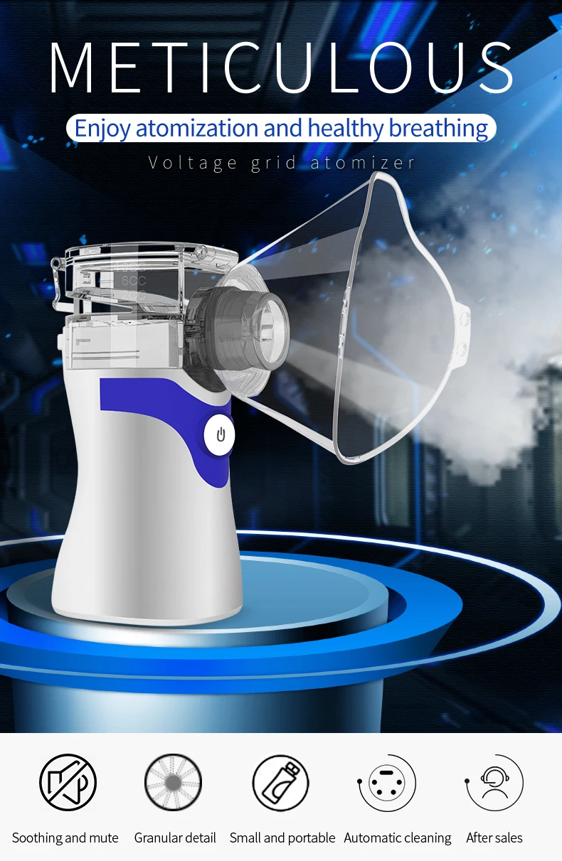 Наслаждайтесь распылением и здоровым дыханием 1. Успокаивающий и бесшумный 2. Гранулированные детали 3. Маленький и портативный 4. Автоматическая очистка