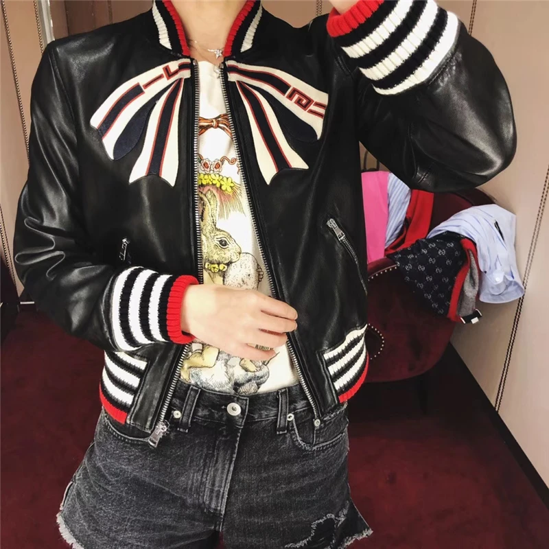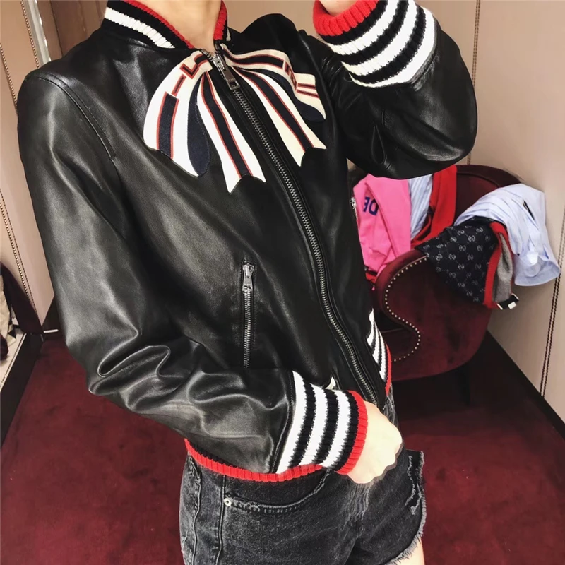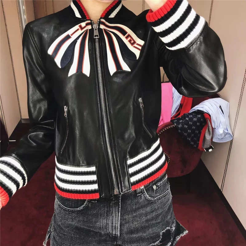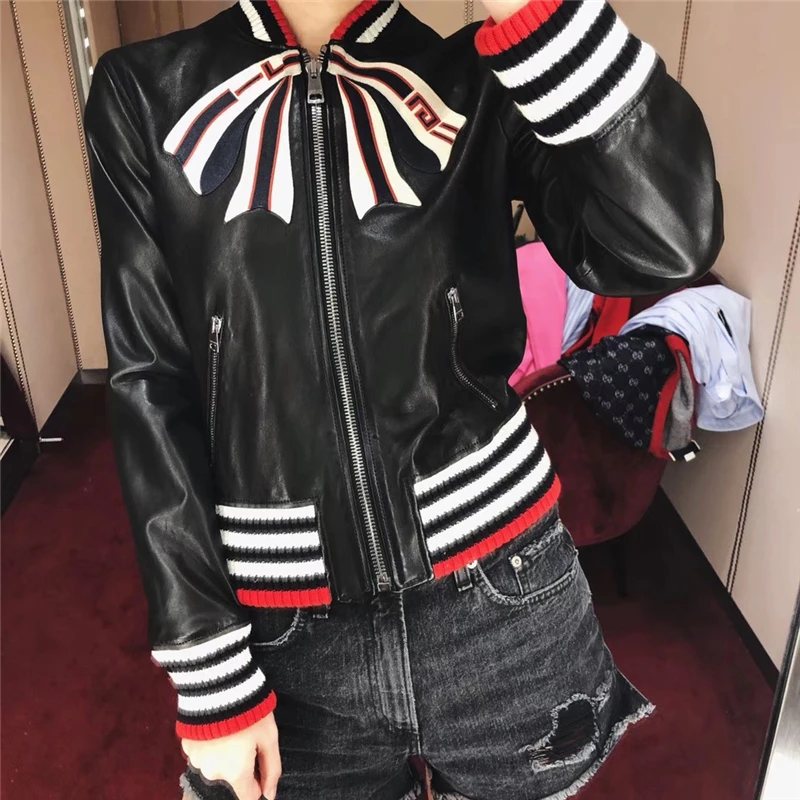 Отзывы о Женская куртка-бомбер из натуральной кожи ветрозащитная Лоскутная куртка с