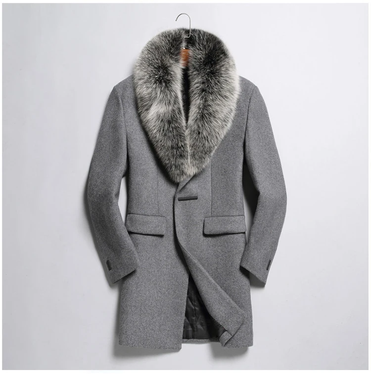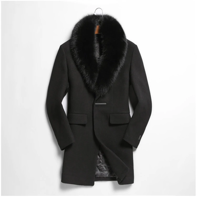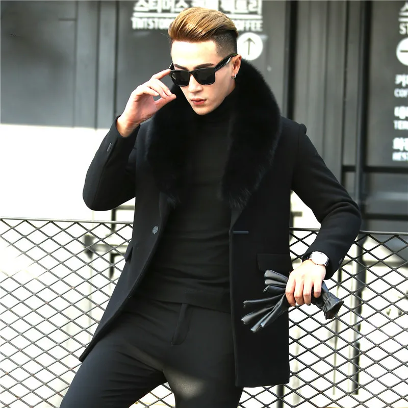 Отзывы о Мужское шерстяное пальто с воротником из натурального Лисьего меха Корейская