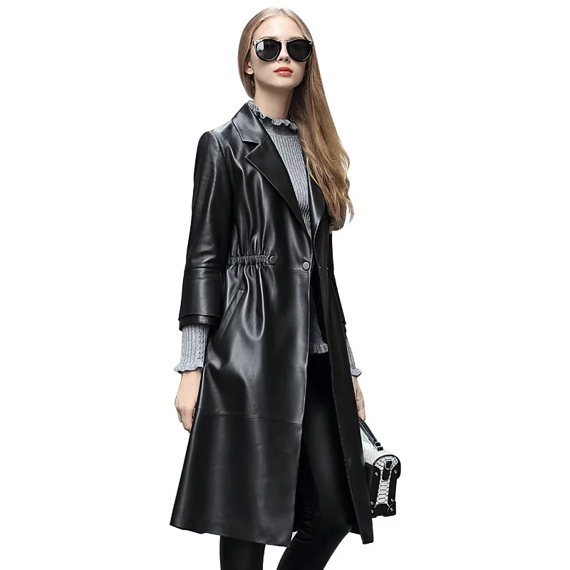 Отзывы о Женская кожаная куртка Boollili из натуральной овечьей кожи Длинная тонкая ветровка