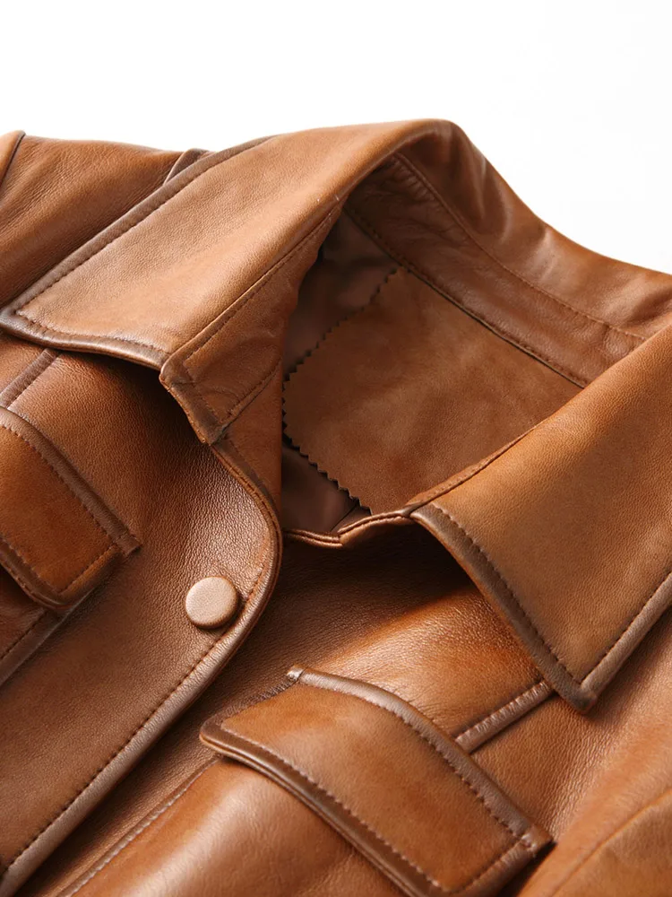 Отзывы о Женская куртка из натуральной овечьей кожи Boollili винтажная приталенная ветровка