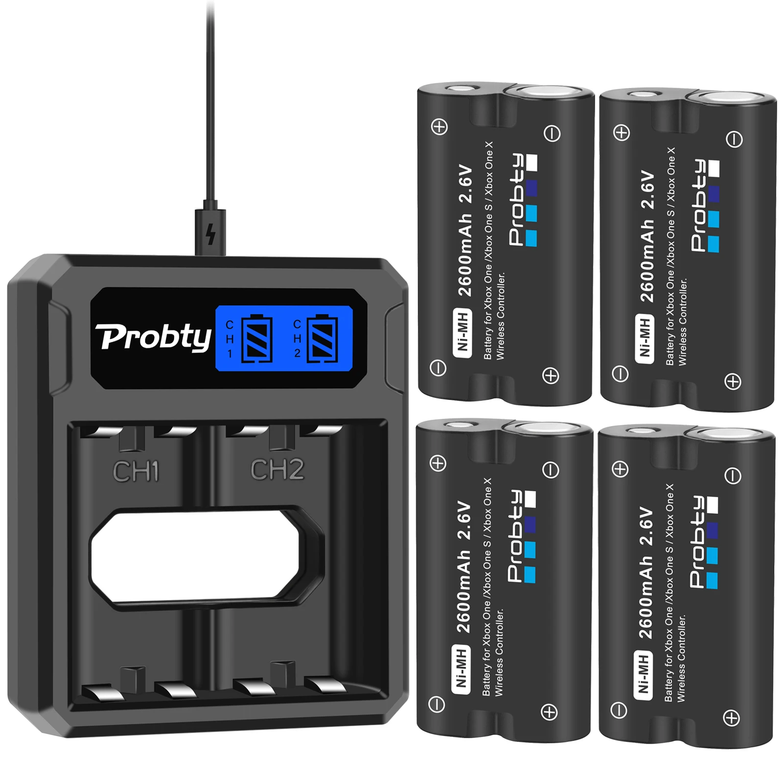 Аккумулятор 4x2600mAh для Xbox One/Xbox One S/Xbox One X/Xbox One/Xbox Series X/S Элитные беспроводные контроллеры геймпады + LCD USB зарядное устройство