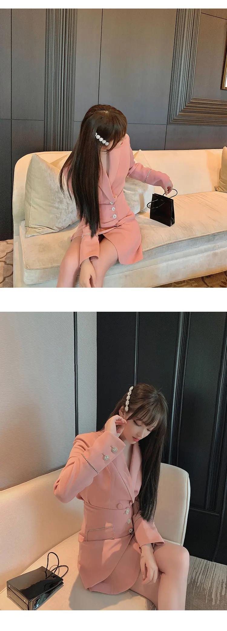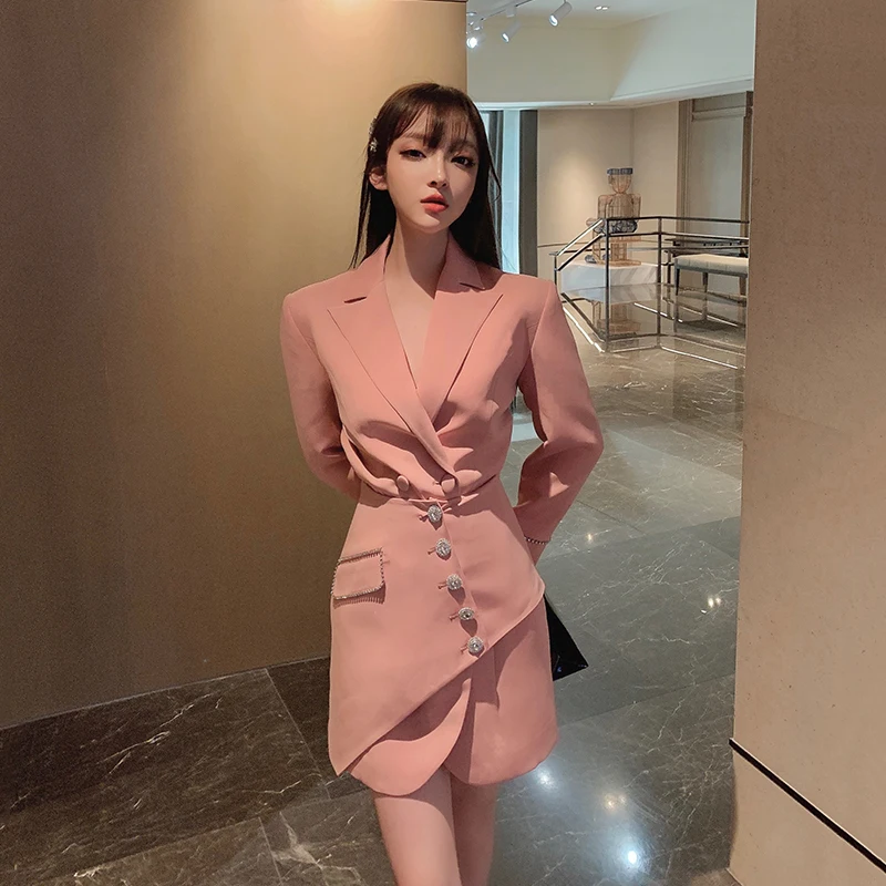 Отзывы о Роскошный весенний розовый костюм Блейзер двубортный тонкий длинный женский