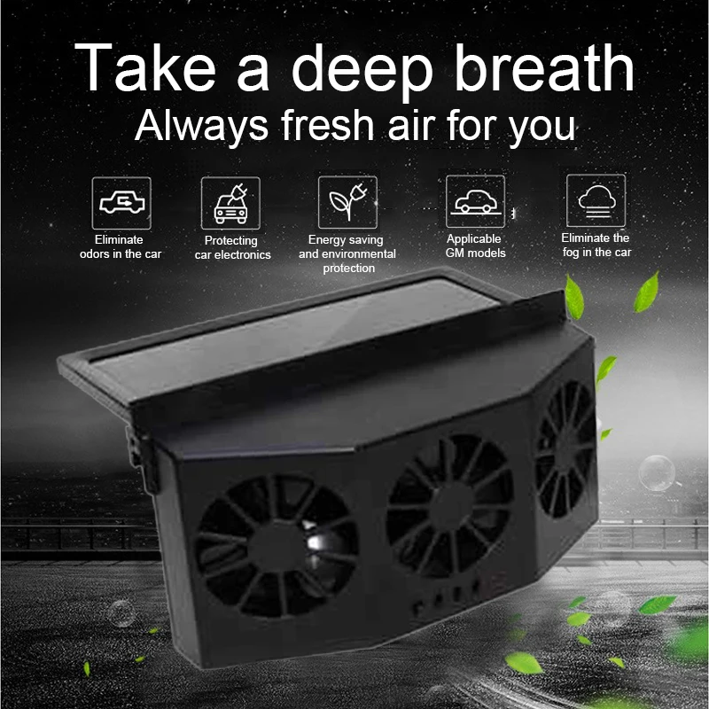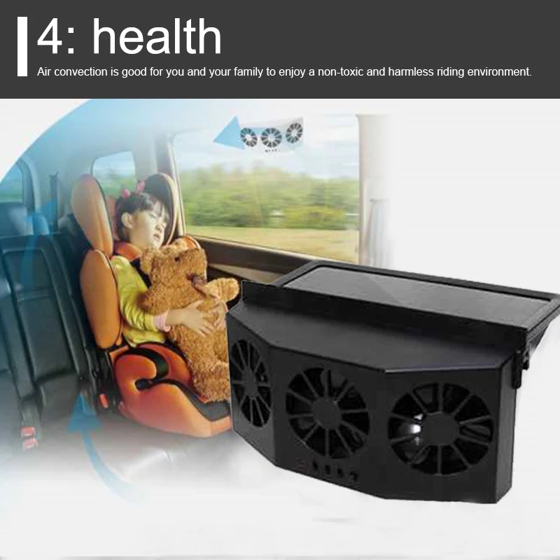 Солнечный автомобильный вытяжной вентилятор, автомобильный вытяжной вентилятор, охлаждающий артефакт, радиатор, оконный вытяжной вентилятор, вентиляционный вытяжной вентилятор, черный трехголовый солнечный вентилятор