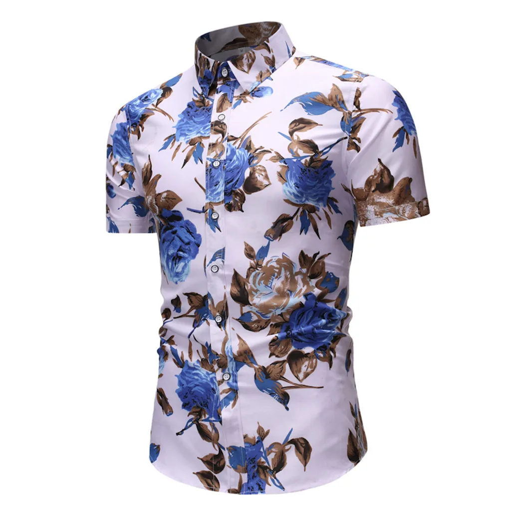 Модные мужские цветные свободные рубашки с коротким рукавом и круглым подолом