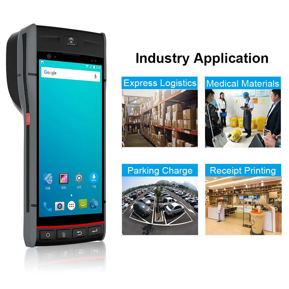 5,5 ''Экран + ОС Android 9,0 + 2G Оперативная память + 16grom + Стикеры ярлык/Термальность принтер + 2D сканер (по желанию) + NFC (опционально) + Wifi + Bluetooth + 2G/3G/4G +SIM + GPS + камера + телефон + Google Playstore и т. Д.