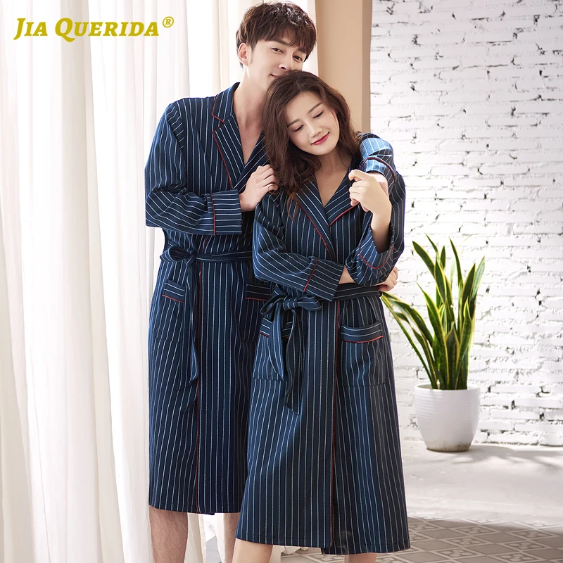 Новое мягкое кимоно юката в повседневном стиле из 100% хлопка, модный домашний халат синего цвета с отложным воротником для пар мужчин и женщин