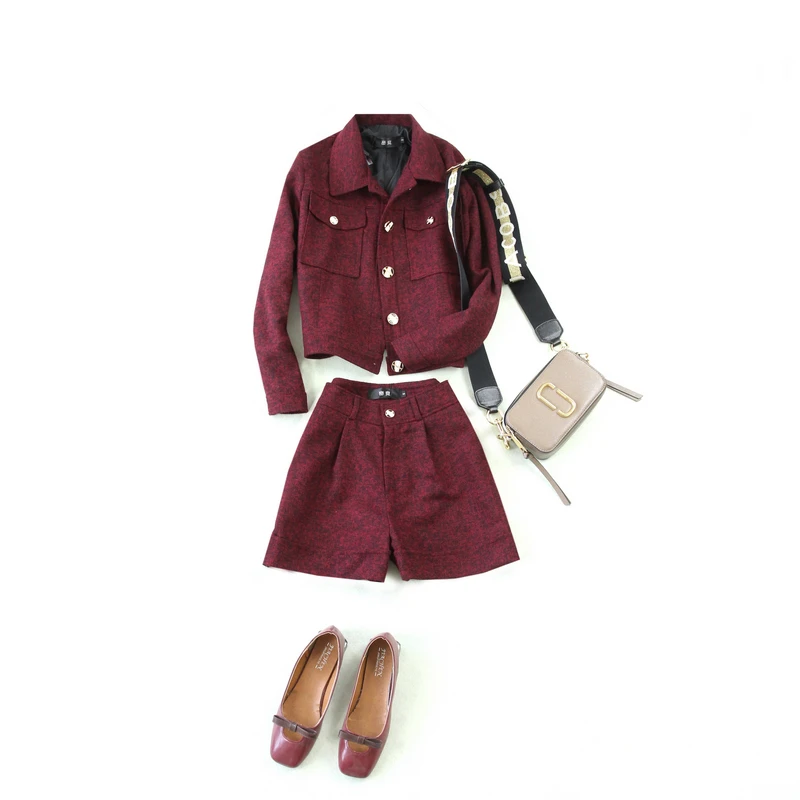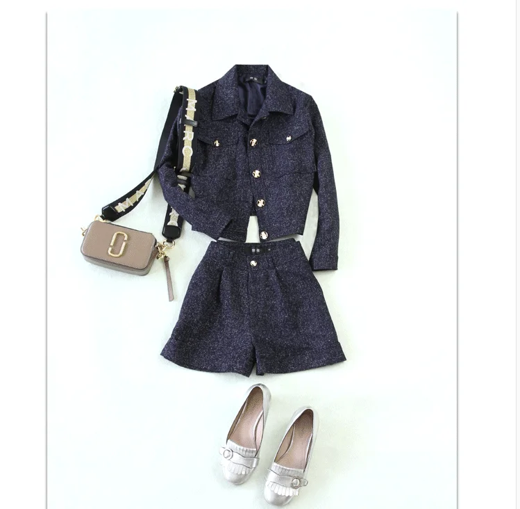 Женская Повседневная шерстяная куртка темно-синего цвета, короткий жакет из плотной ткани и брюки с широкими штанинами, Осень-зима 2020