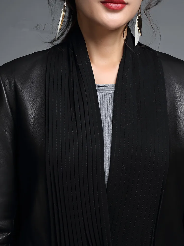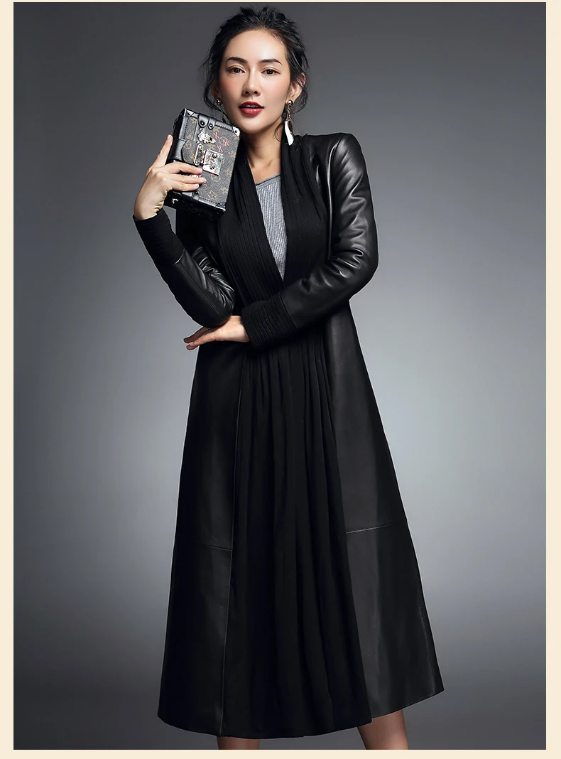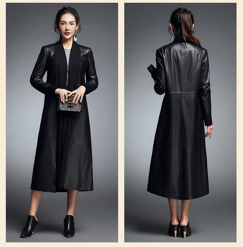 Отзывы о Женская кожаная куртка Boollili Длинная ветровка из натуральной овечьей шкуры