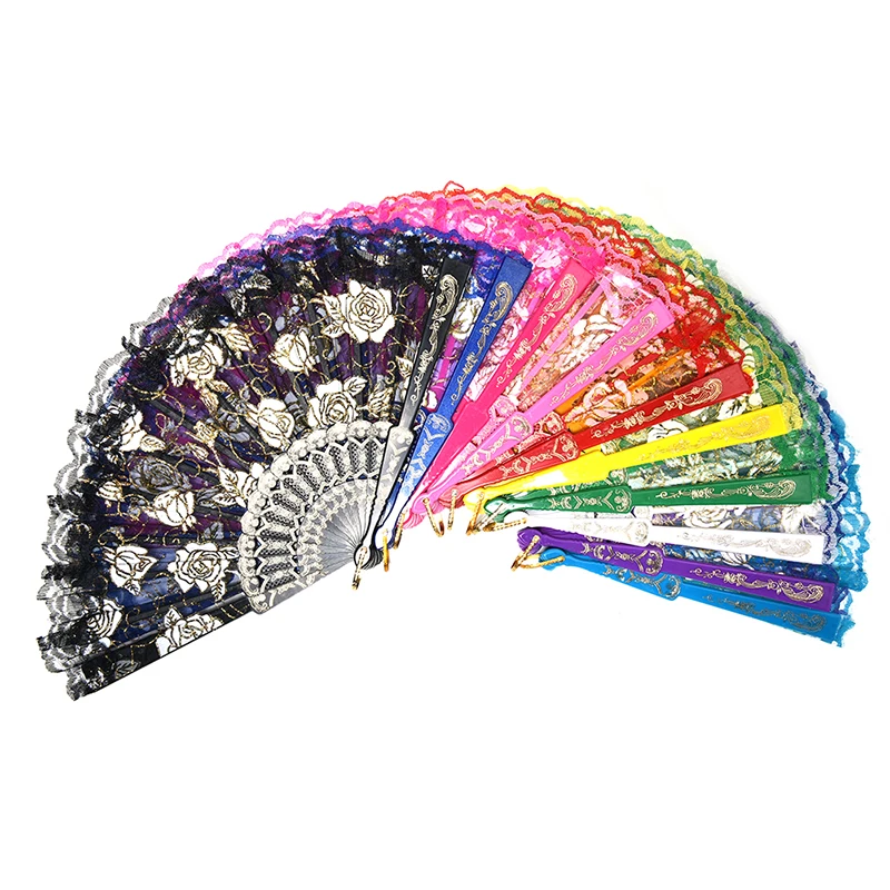 10 цветов, кружево, испанская ткань, шелк, складной, ручная работа, для танцев, вентиляторы, цветы, вечерние, для свадьбы, выпускного, для танцев, летние аксессуары для фанатов