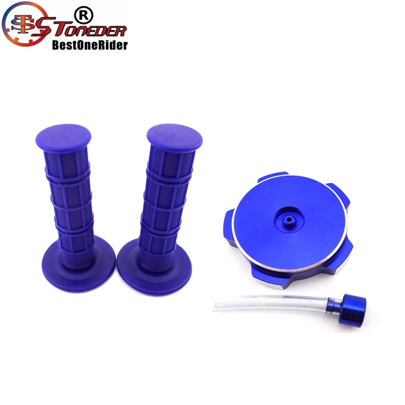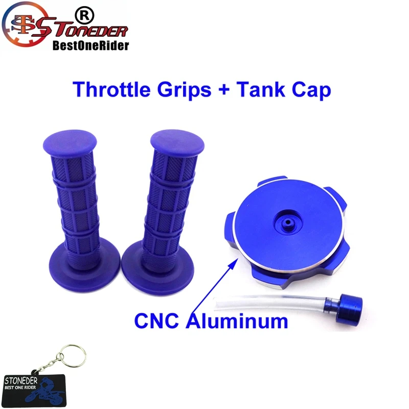 CNC Aluminum Tank Cap + Durable Soft Ruber Throttle Handle Grips For Chinese Made Pit Dirt Motor Trail Bike 50cc 70cc 90cc 110cc 125cc 140cc 150cc 160cc.