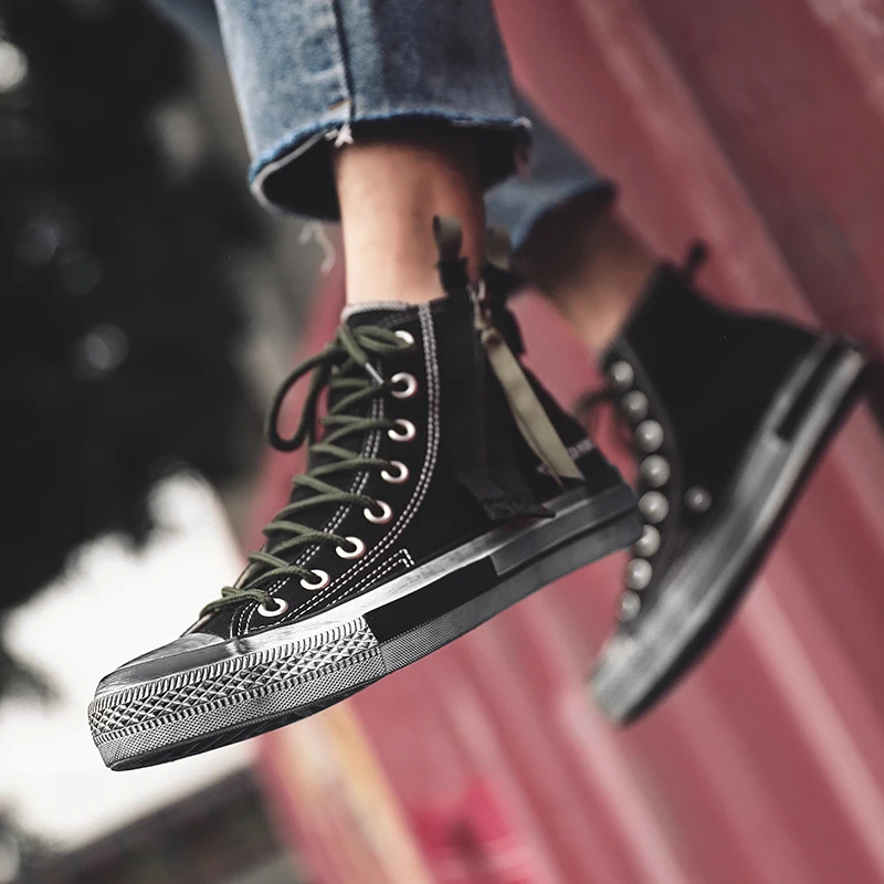 Отзывы о Новинка Высокая парусиновая обувь с ремешком мужские кроссовки на шнуровке