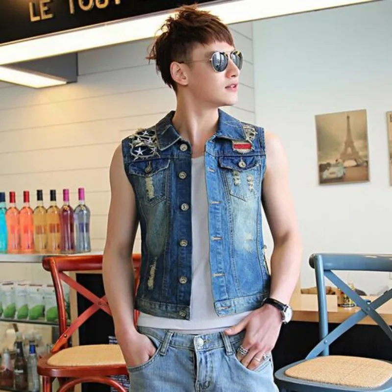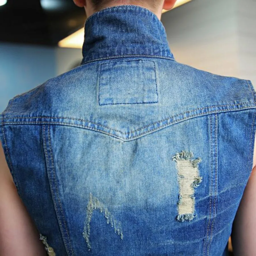 Отзывы о Жилет мужской джинсовый без рукавов Байкерский Повседневный жилет из денима на