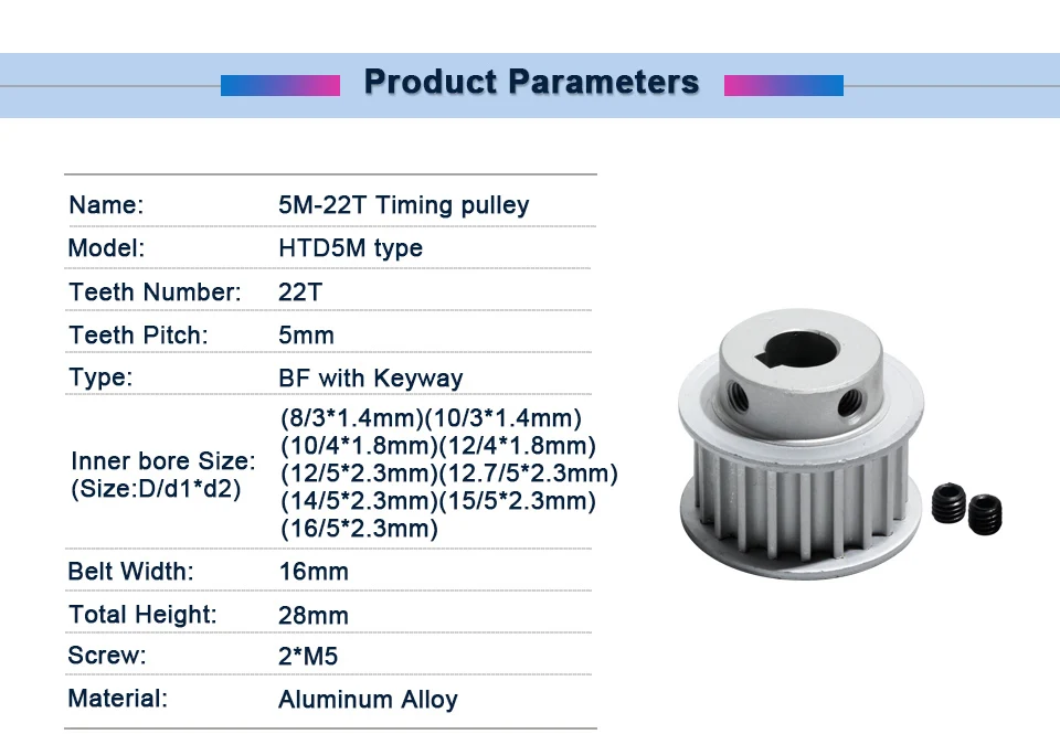 Отзывы о Шкив ГРМ HTD5M-22T со шпоновым пазом Ширина ремня 16 мм трансмиссионный шкив 8/10/1/12/12/14/16