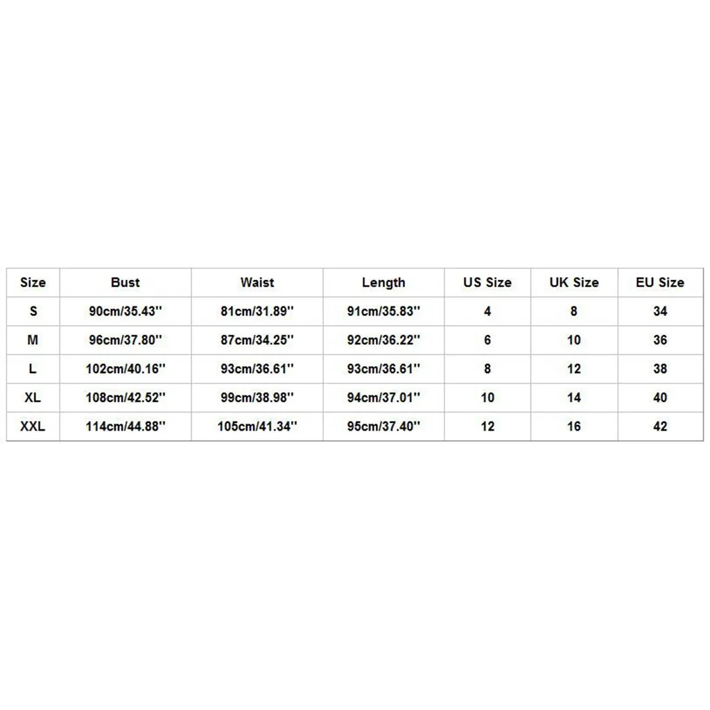 | Size | Bust | Waist | Length | US Size | UK Size | EU Size |