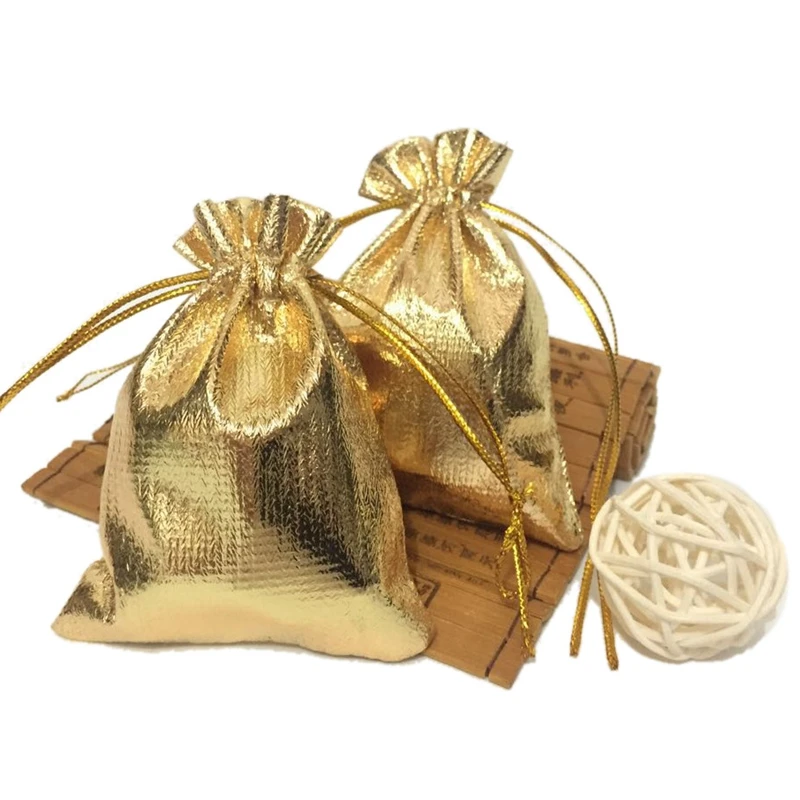 100 шт Золотая фольга органза сумка конфеты подарочные сумки рождественские украшения Свадебная вечеринка сумка Подарочная упаковка Сумки на шнурке сумка