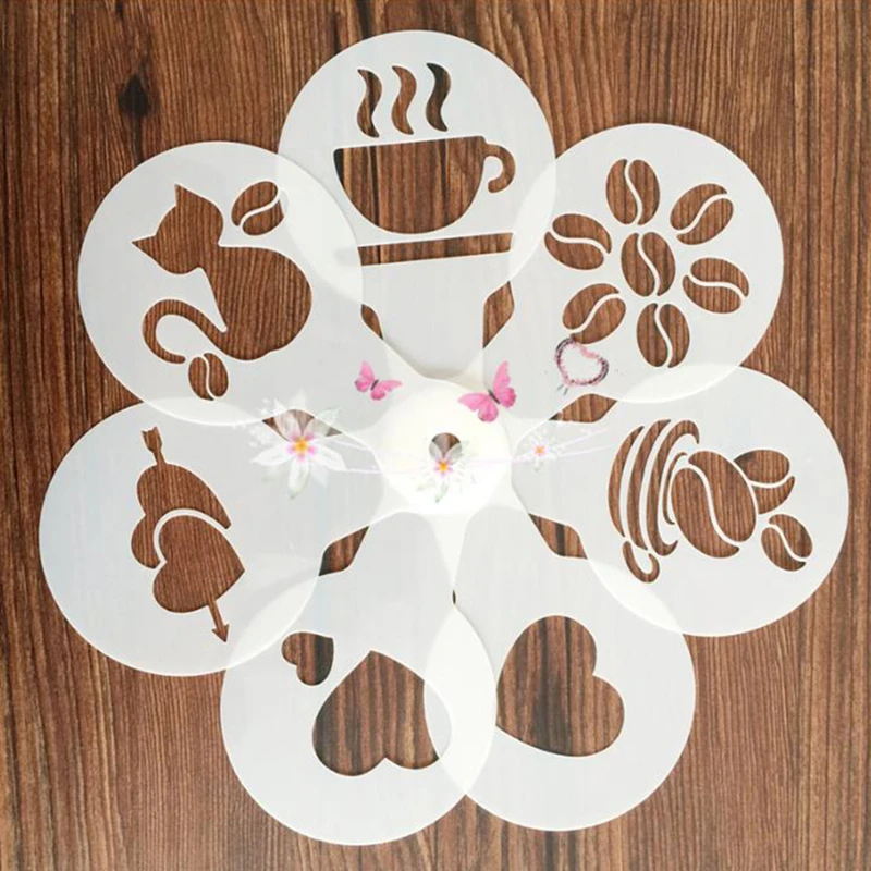 Отзывы о New 19 Pcs/set Fancy Coffee Printing Model Foam Spray Cake Stencils Drawing Cappuccino Mold Powdered Sugar Sieve Tools | Дом и сад