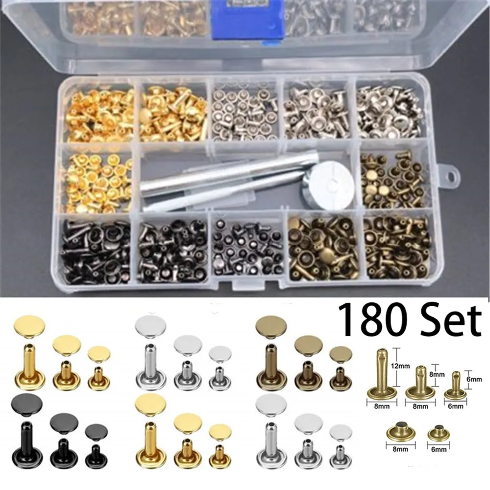 Диаметр: 6 мм внутренний (200 шт) / 15 мм кепки с заклепками (100 шт) / 8 мм Внутренний (120 шт) / 6*6 мм + 8*8 мм + 8*12 мм (180 шт.)