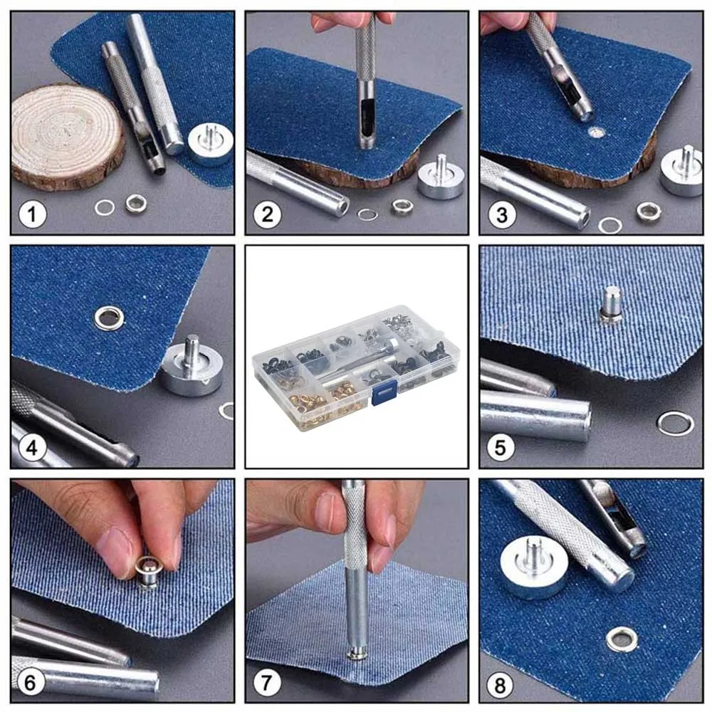 Набор инструментов для металлических люверсов, 200 шт., установка люверсов, пара скрапбук пуговиц для одежды, пробойник для кожи
