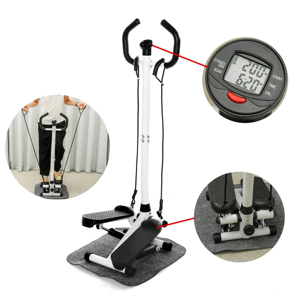 -Для тех, кто хочет иметь некоторые низкоударные аэробные тренировки дома, мы очень рекомендуем этот аэробный фитнес-шаг, воздушный альпинист, шаговый тренажер, новое оборудование! Подходит для людей всех возрастов, особенно для тех, у кого есть лимитированное время на тренировки. Цифровой тренировочный компьютер отслеживает ваши шаги, время и калории, помогая вам каждый раз, когда вы на него шагаете, получать качественные тренировки. Широкие противоскользящие педали обеспечивают безопасность. Также в комплект входят две ленты сопротивления, которые обеспечивают полную тренировку тела.