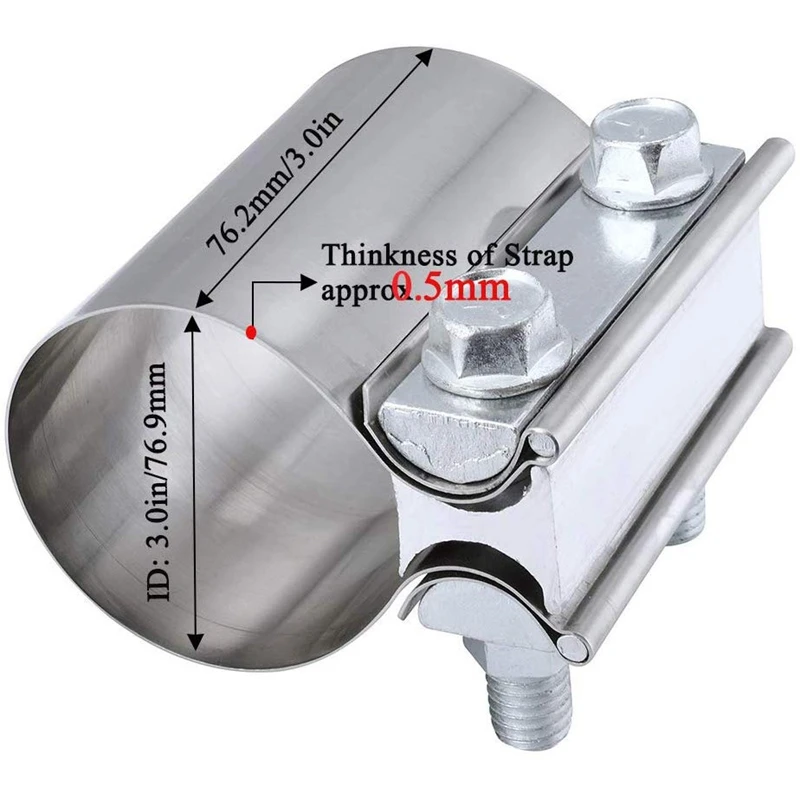 2 шт. 3,0 дюймов стыковое соединение Выпускной Диапазон зажима рукав Нержавеющая сталь хомут