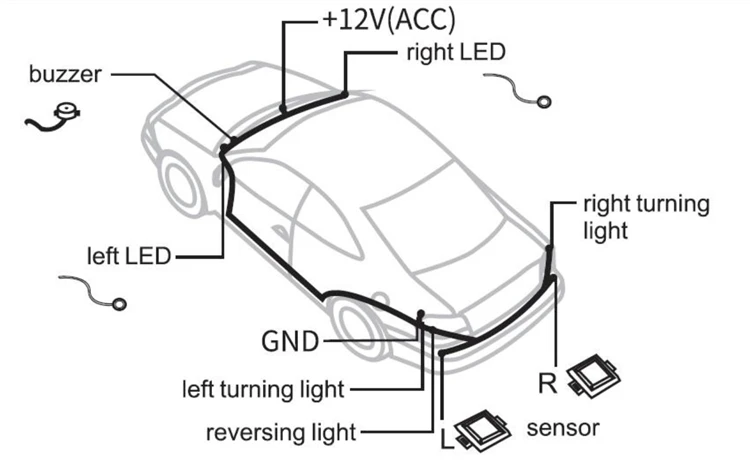 Это одна система, положительный полюс, подключенный к автомобильному АКК, Подключите отрицательный полюс к отрицательному полюсу аккумулятора. Мощность: DC12V Радар: 24 ГГц Когда кто-то рядом с вашим автомобилем 0-10 метров, светодиодный на стекле будет мигать, чтобы предупредить вас, если в то же время светильник сигнала поворота работает, звуковой сигнал и светодиодный сигнал предупредят вас вместе.