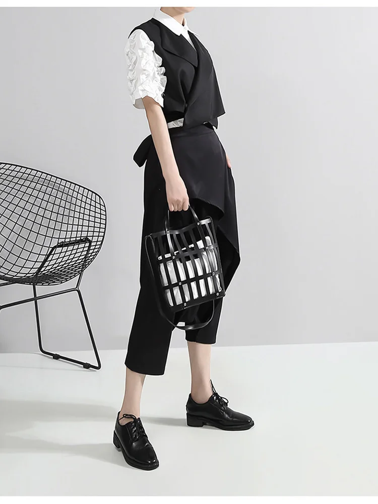 Отзывы о Женский Свободный жилет [EAM] черный с поперечным разрезом новый модный без