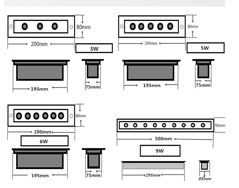 Примечание: Размер 12 Вт обновлен, правильный размер L500 * W90 * h65мм