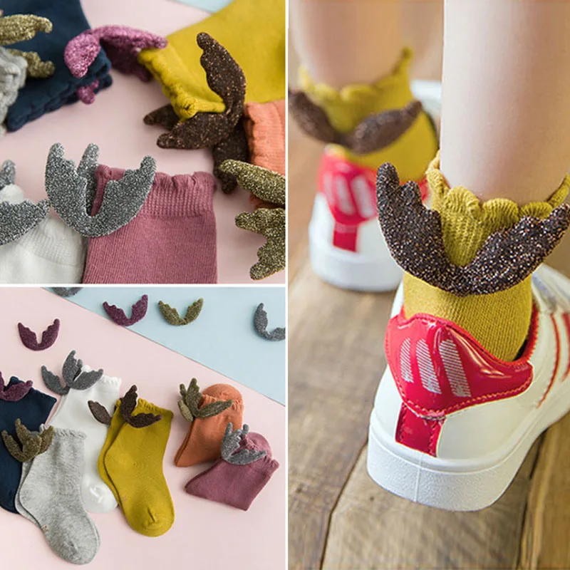 Носки для маленьких девочек с крыльями ангела, хлопковые детские носки принцессы, однотонные милые носки для детей 1-8 лет
