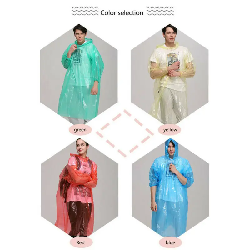 Описание: Легкий и легко носить с собой. Подходит для чрезвычайных ситуаций, поломок, спортивных/музыкальных событий, путешествий, кемпинга, прогулок, концертов, мероприятий на свежем воздухе и т. д. Дизайн на пуговицах, легко носить и снимать. Он водонепроницаемый и может защитить вас в дождливую погоду. Параметры: Наименование товара: одноразовый плащ Материал: PE Цвет: красный, зеленый, желтый, синий Особенности: одноразовые, водонепроницаемые, с капюшоном, с завязками Размеры детали [Наш Размер] Обхват груди: 130 см/51,18 дюйма, рукав: 77 см/30,31 дюйма, длина одежды: 115 см/45,27 дюйма (прибл.) Примечания: Благодаря светильник и экрана Цвет Товара может быть s светильник ly отличается из-за характеристик монитора компьютера. Возможны незначительные отклонения в размерах из-за различных измерений вручную. Посылка включает в себя: 1 x одноразовый дождевик