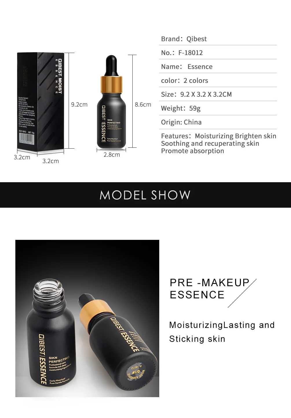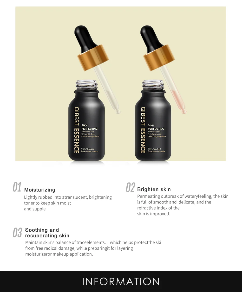 Бренд: QIBEST Название продукта: эссенция для предварительного макияжа Вес нетто: 15 г Особенности: Увлажняющая стойкая липкая кожа Чистая мягкая формула, которая легко впитывается Снимает тусклую кожу и создает водостойкую, блестящую и эластичную кожу Функция: Эссенция для предварительного макияжа губ Смесь с жидкой основой Проникает и питает кожу и создает блеск кожи □Nourish кожи □Brighten кожи □Relieve тусклая □Relieve против мимических морщин □Smooth кожи □Elastic кожи