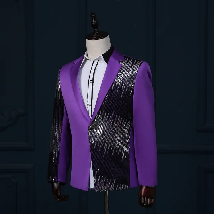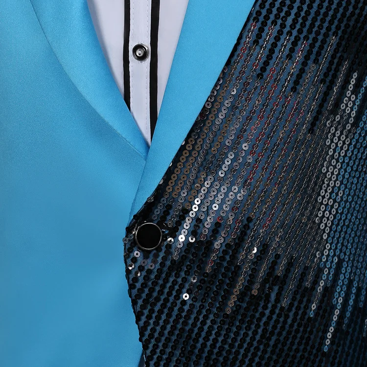 Отзывы о Мужской Блейзер на одной пуговице черный приталенный с блестками костюм для