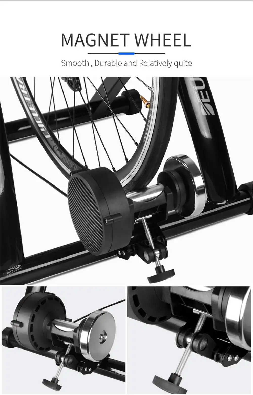 1.Fits for 26"~28" and 700C different size of wheel; With front wheel block and quick release skewer