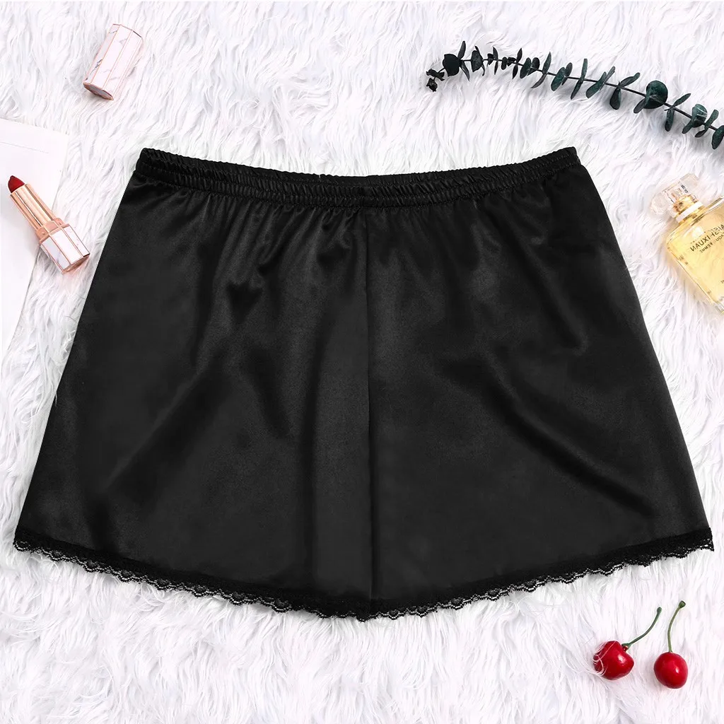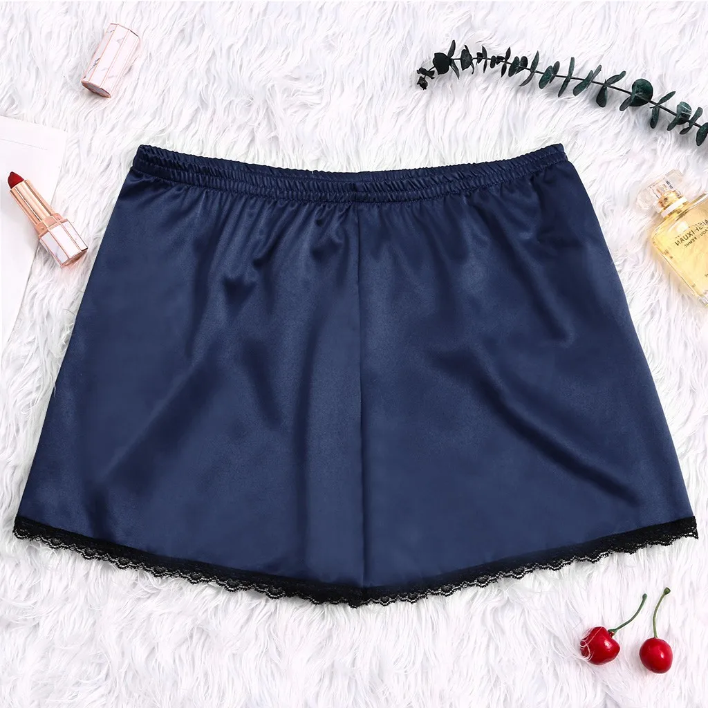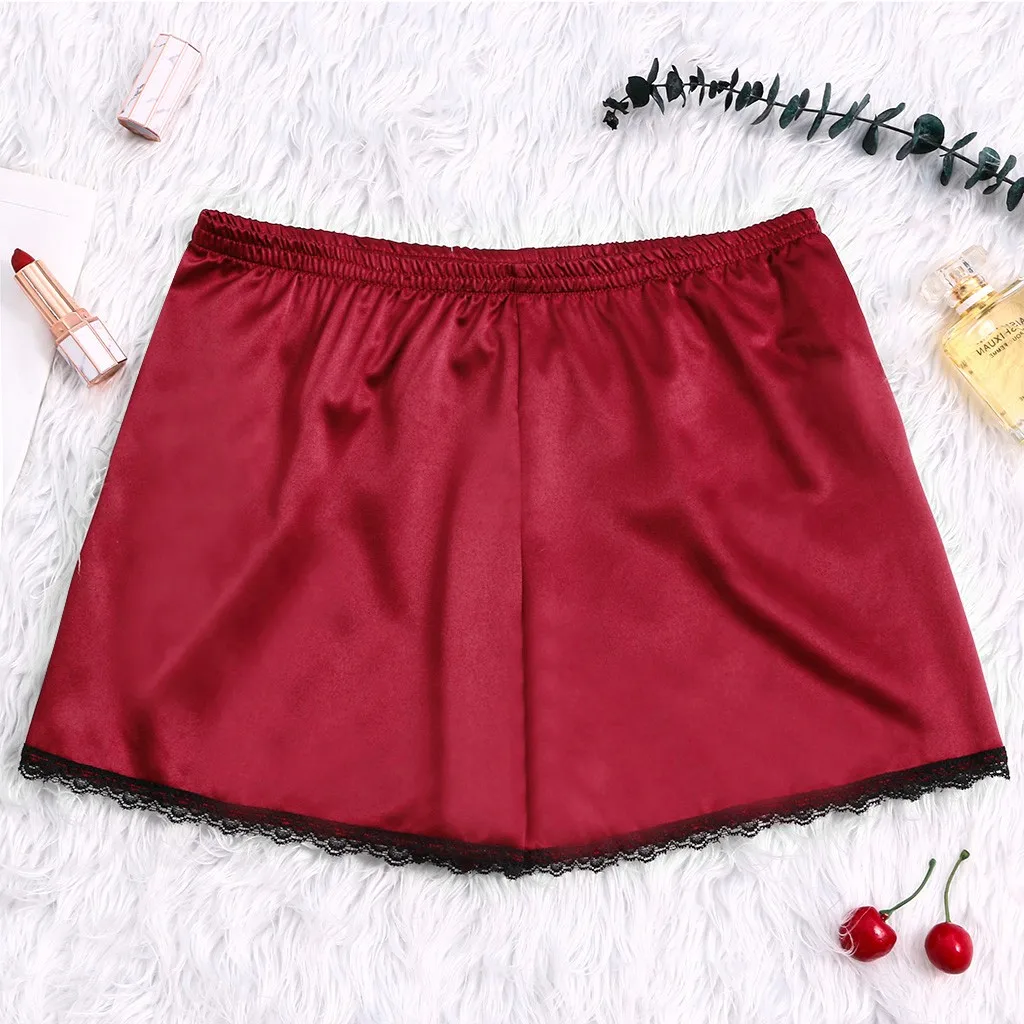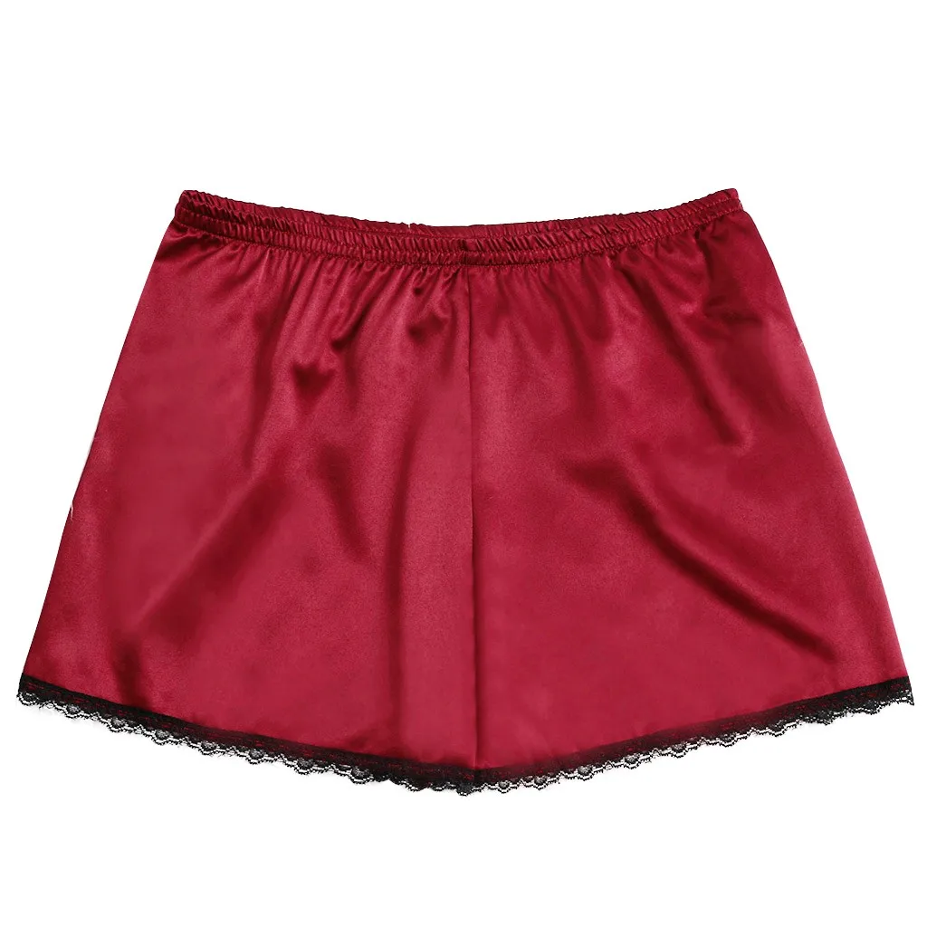 Шелк, атласное сексуальное с цветочным рисунком для девочек; Кружевные пижамы, нижнее белье Для женщин шорты S-XXXL