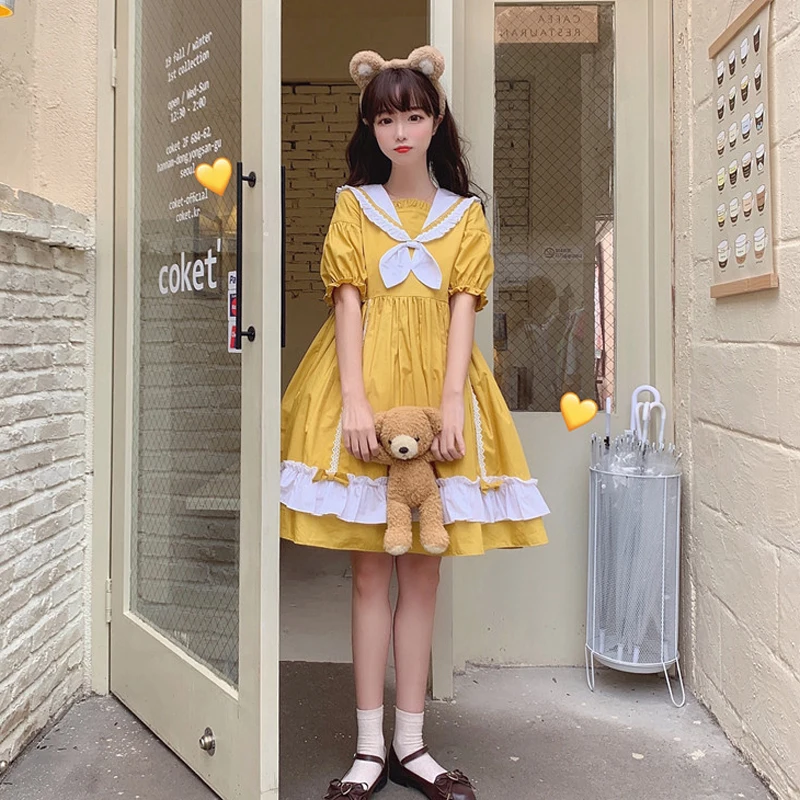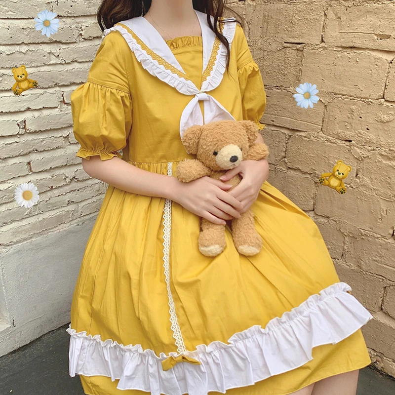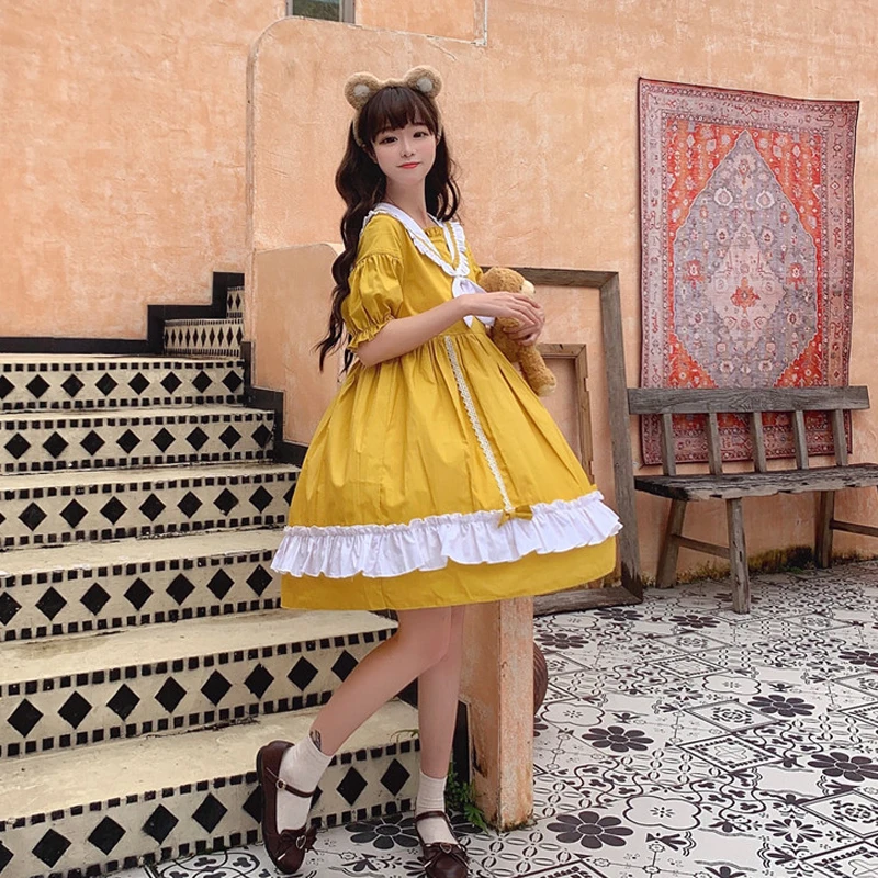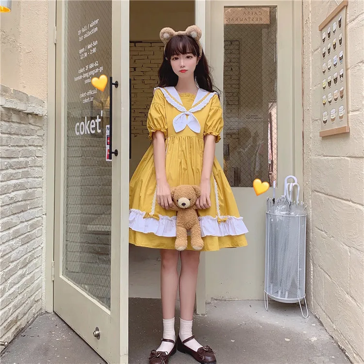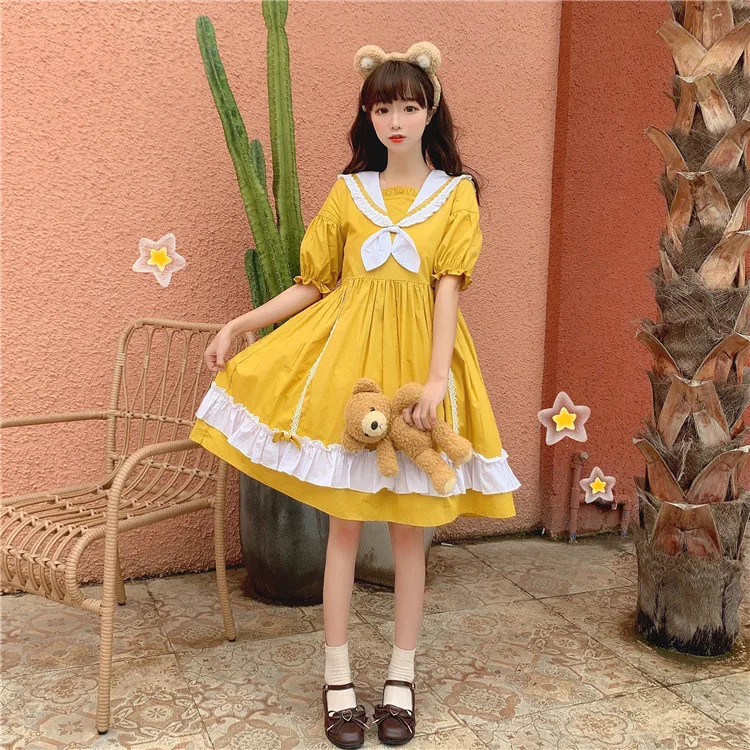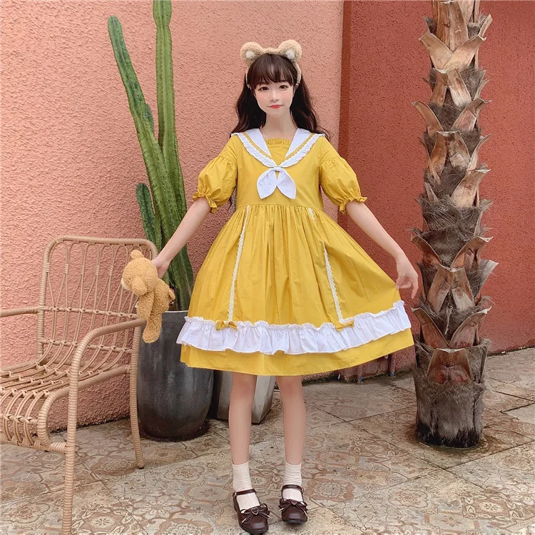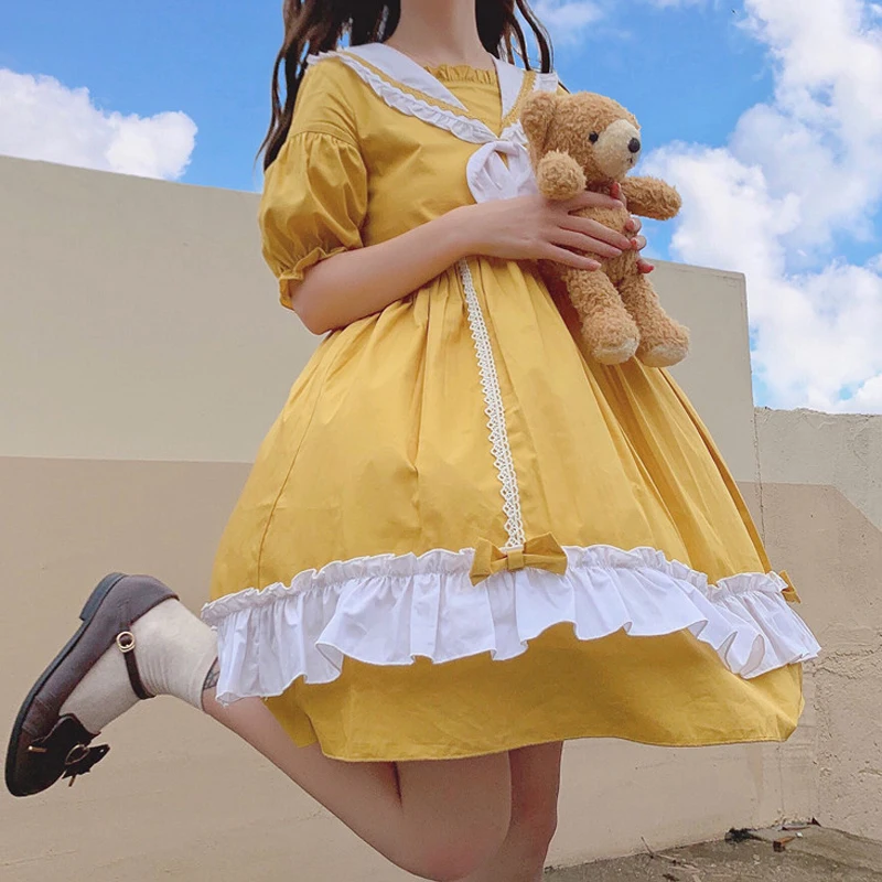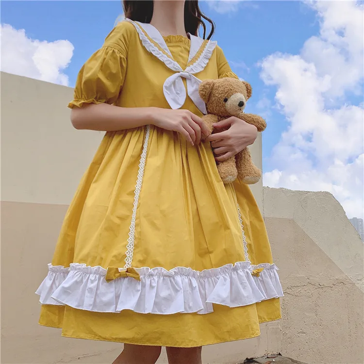Отзывы о 2020 милое летнее платье в стиле лолита для девочек милые винтажные желтые платья с