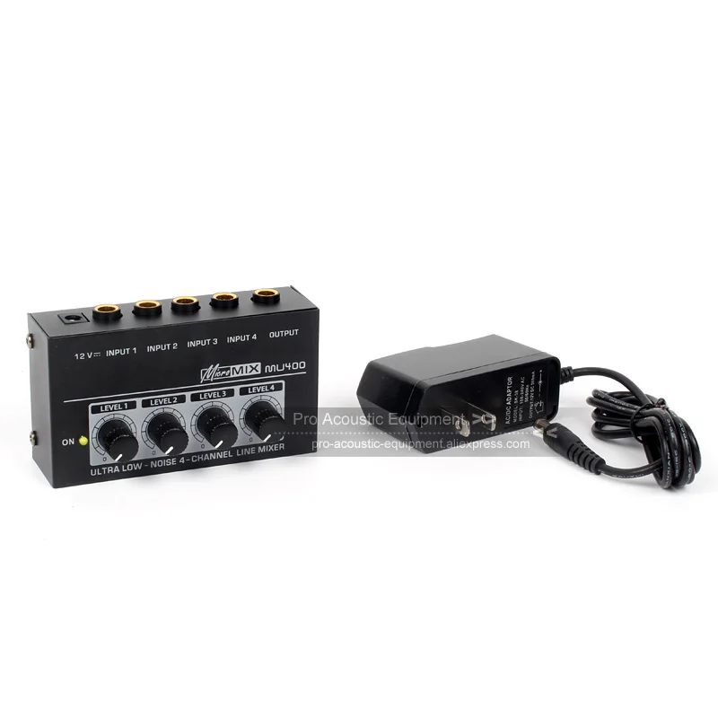 Четырехходовой Портативный микшер/ультра низким уровнем Шум 4-канальный смеситель 4 Каналы мини микшерный пульт DJ микрофон линейный выход звука стол